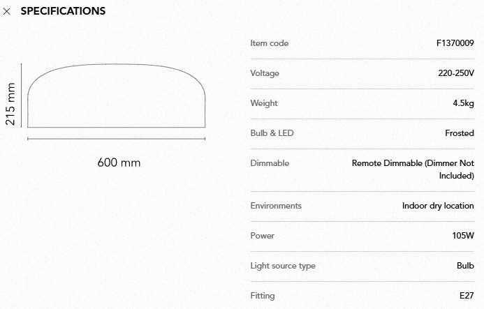 Ceiling-mounted lamp providing direct light. Aluminium body. Available in gloss black, white, matt black, green, red or MUD. Injection-moulded opalescent methacrylate diffuser. Steel wall and ceiling attachment.