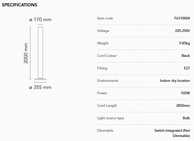 Floor lamp providing indirect and diffused light. Silver powder-coated steel base. Opaline extruded polymethylmethacrylate (PMMA) diffuser column. Functions ON/OFF of two placed luminous sources at the extremities of the diffuser of the apparatus, happen by means of interrupting double quantity to pedal mounted on the cable feeding electrical worker.