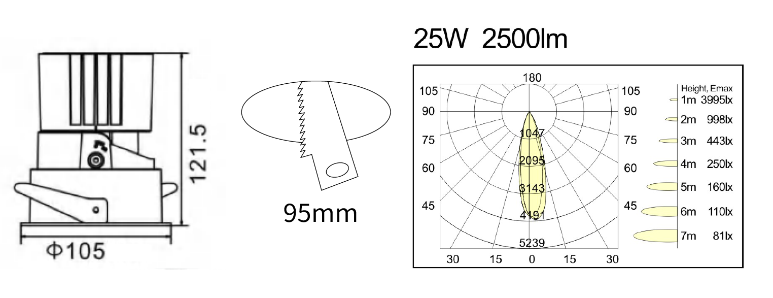 * LED 25W 2500lm CRI90 3000K 38Degree with Triac Dimming driver