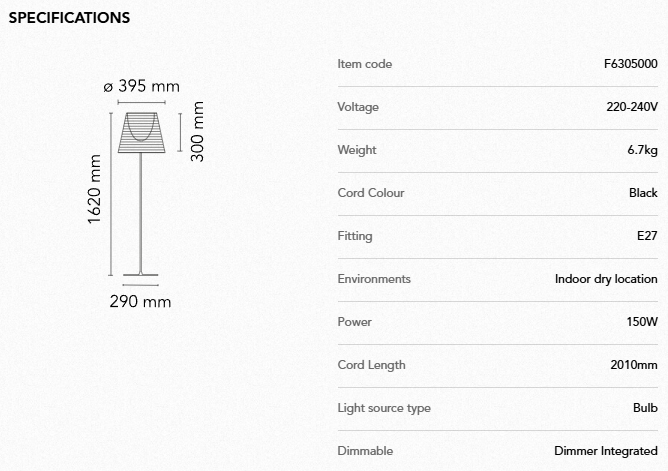 Floor lamp providing diffused lighting. Base, rod support and diffuser support in die-cast, polished and chrome-plated Zamak alloy. Galvanized P04 steel base cover. Injectionmolded PC (polycarbonate) opal inner diffuser and support for the lamp-holder. Outer diffusers in transparent or fumèe PMMA (polymethylmethacrylate), and silver or bronze on the inner surface, by vacuum aluminum coating. Injection-molded PC (polycarbonate) upper ring, completely transparent or transparent diffuser and silver diffuser) or transparent brown for the outer bronze diffuser. On the cable there is the electronic dimmer which allows the regulation of light brightness.