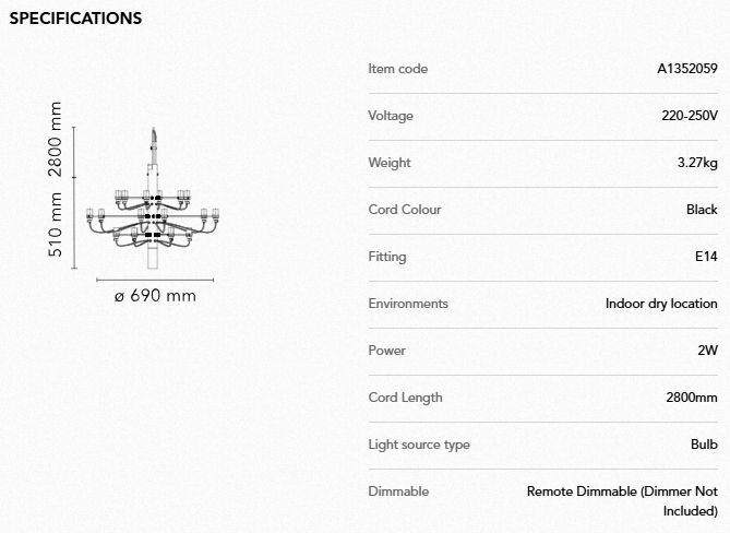 Suspension lamp providing diffused light. Steel central structure with brass arms, both available either chromium-plated, black or golded. Steel ceiling fitting and rose.