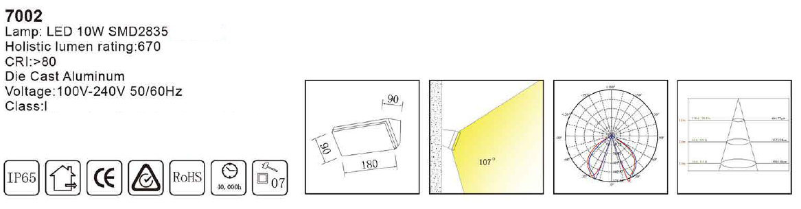 * LED 10W CRI80 670lm 3000K 107Degree and Non Dim integrated driver.